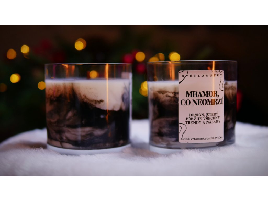 Každá svíčka je ručně vyrobená ze 100 % sojového vosku, každý mramorový vzor je originál.